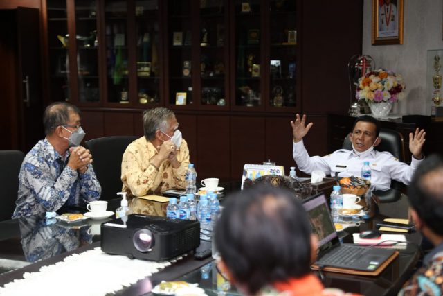 KEPRINEWS – Gubernur Kepulauan Riau H. Ansar Ahmad memimpin rapat persiapan proyek pengembangan jalan menuju klenteng Senggarang kota Tanjungpinang di ruang kerja Gubernur, lantai 4, Dompak, Tanjungpinang, Kamis (7/10/2021).